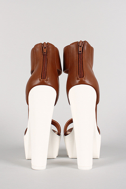 Wild Diva Lounge Two Tone Lug Sole Open Toe Heel