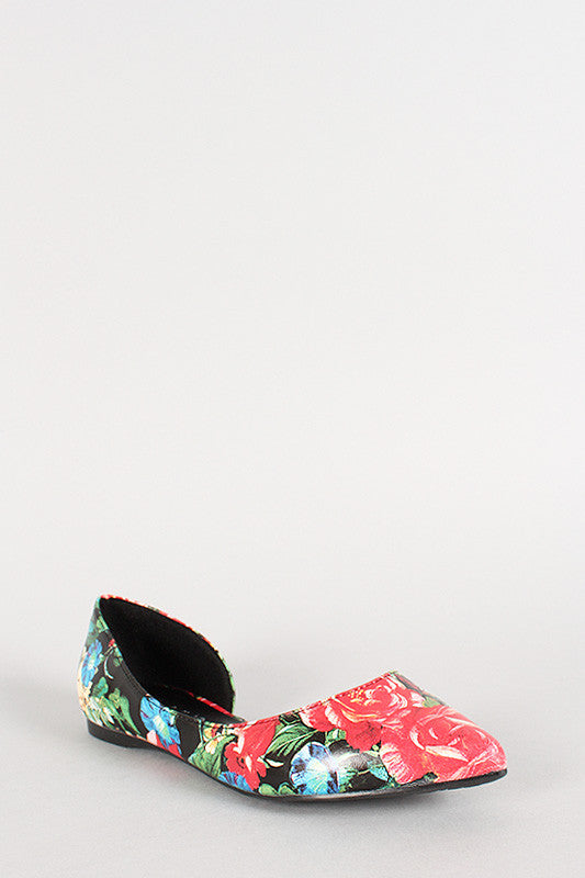 Breckelle Floral Pointy Toe Sweetheart Flat
