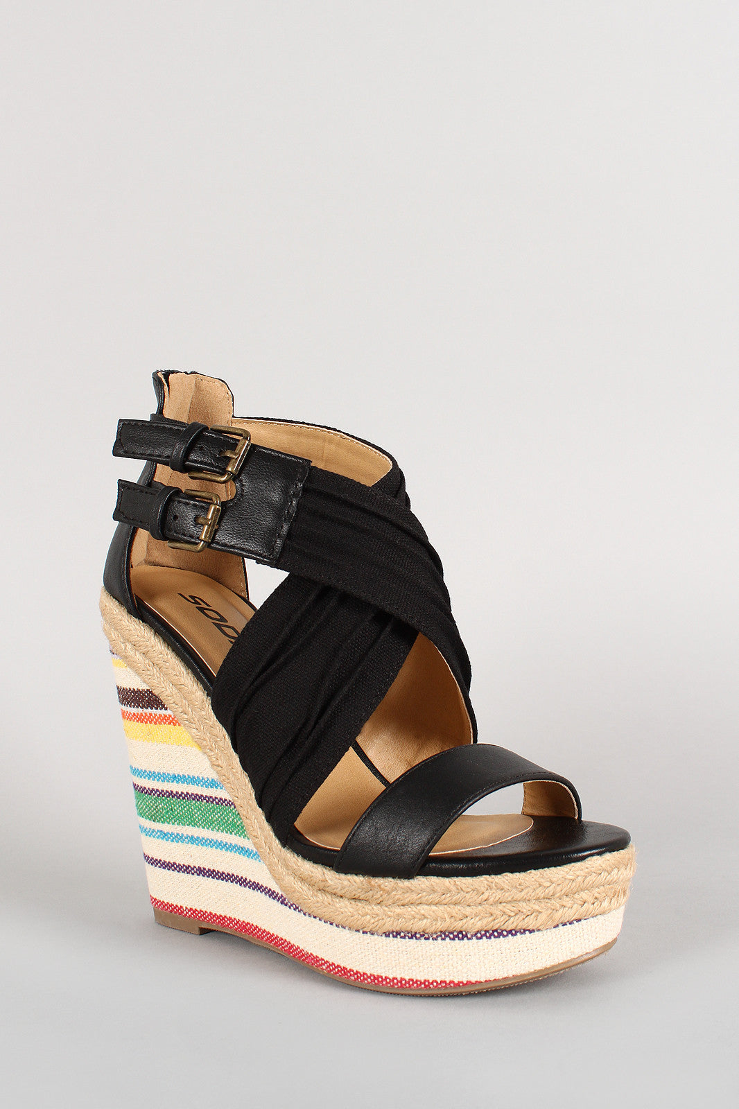 Soda Tribal Print Pleated Criss Cross Open Toe Wedge