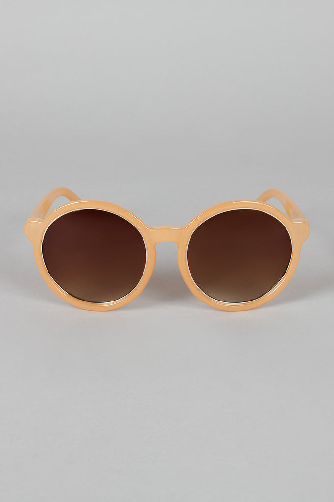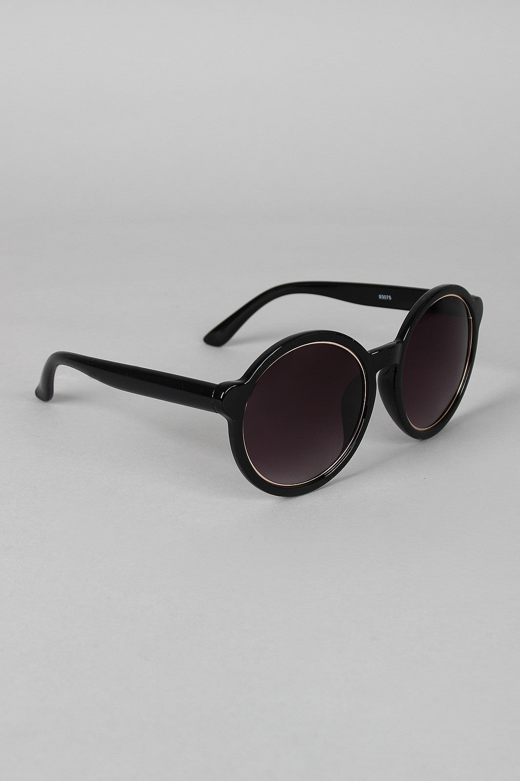 Add some subtle style to your outfit with these metallic accented sunglasses! Features a round plastic frame and slightly gradient lenses.