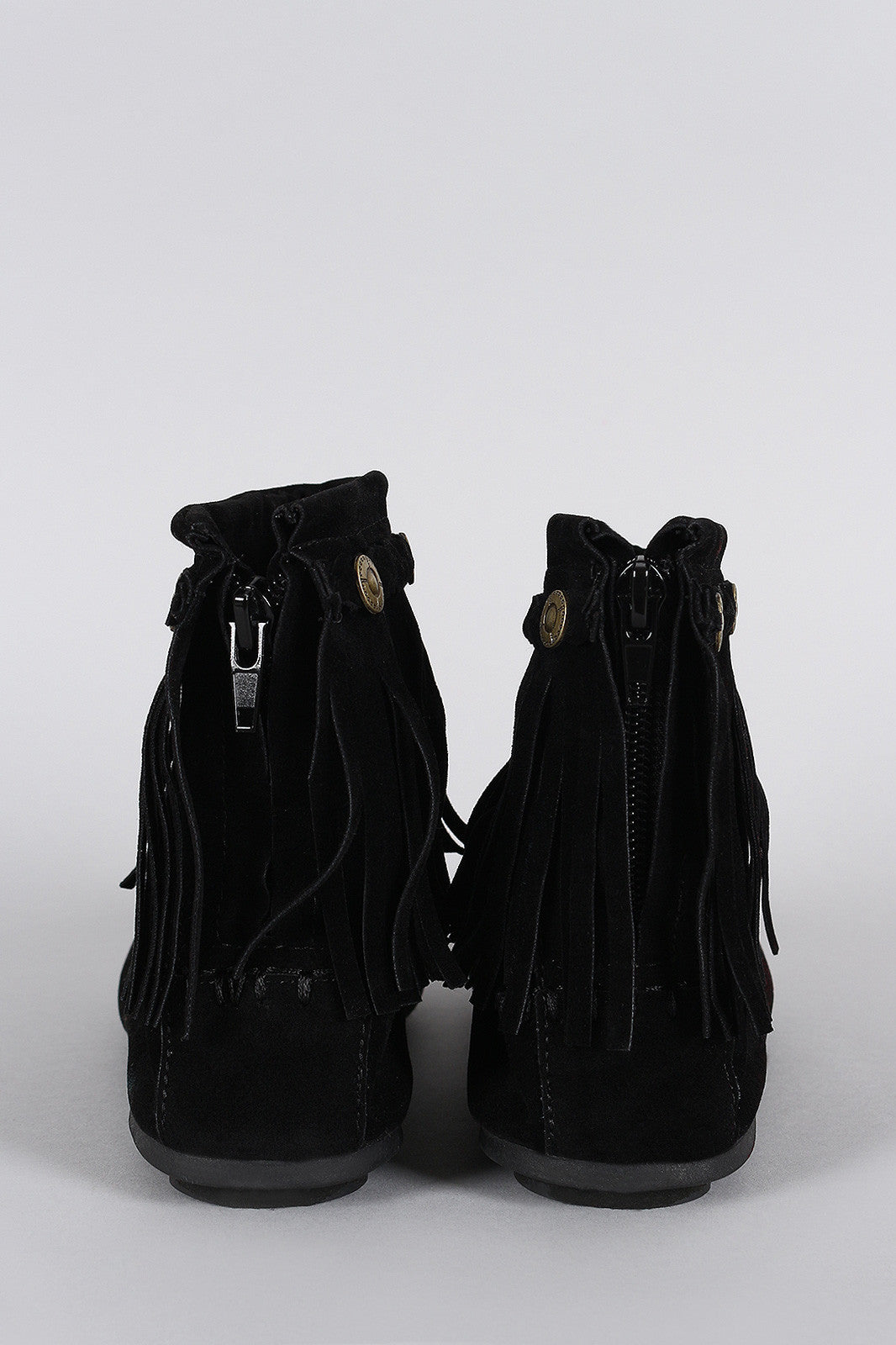 This stylishly hot fringe designs at ankle, cushioned insole, and rear zipper closure for easy on/off.