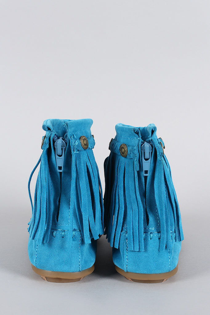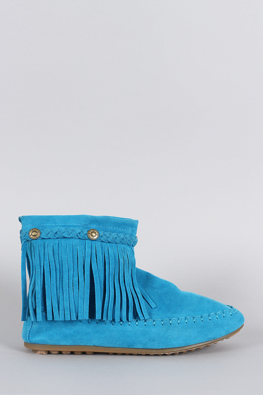 Suede Button Braided Fringe Round Toe Booties