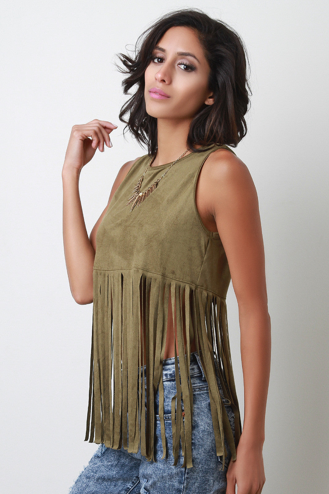 Suede Sleeveless Fringe Top