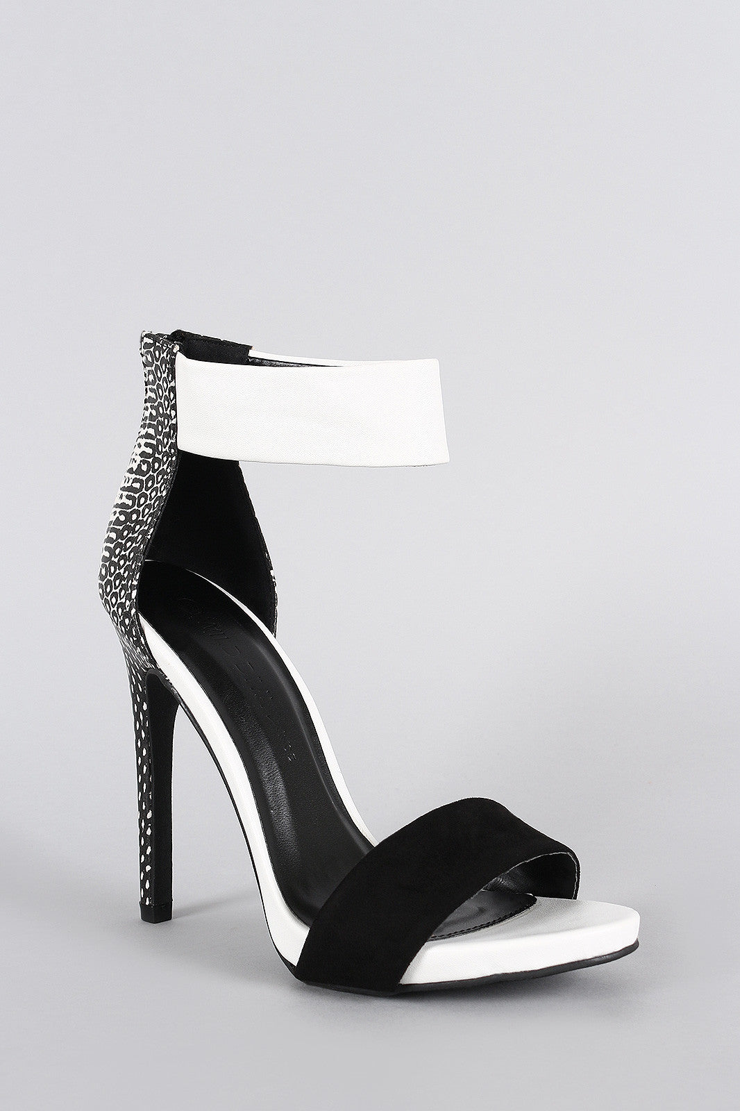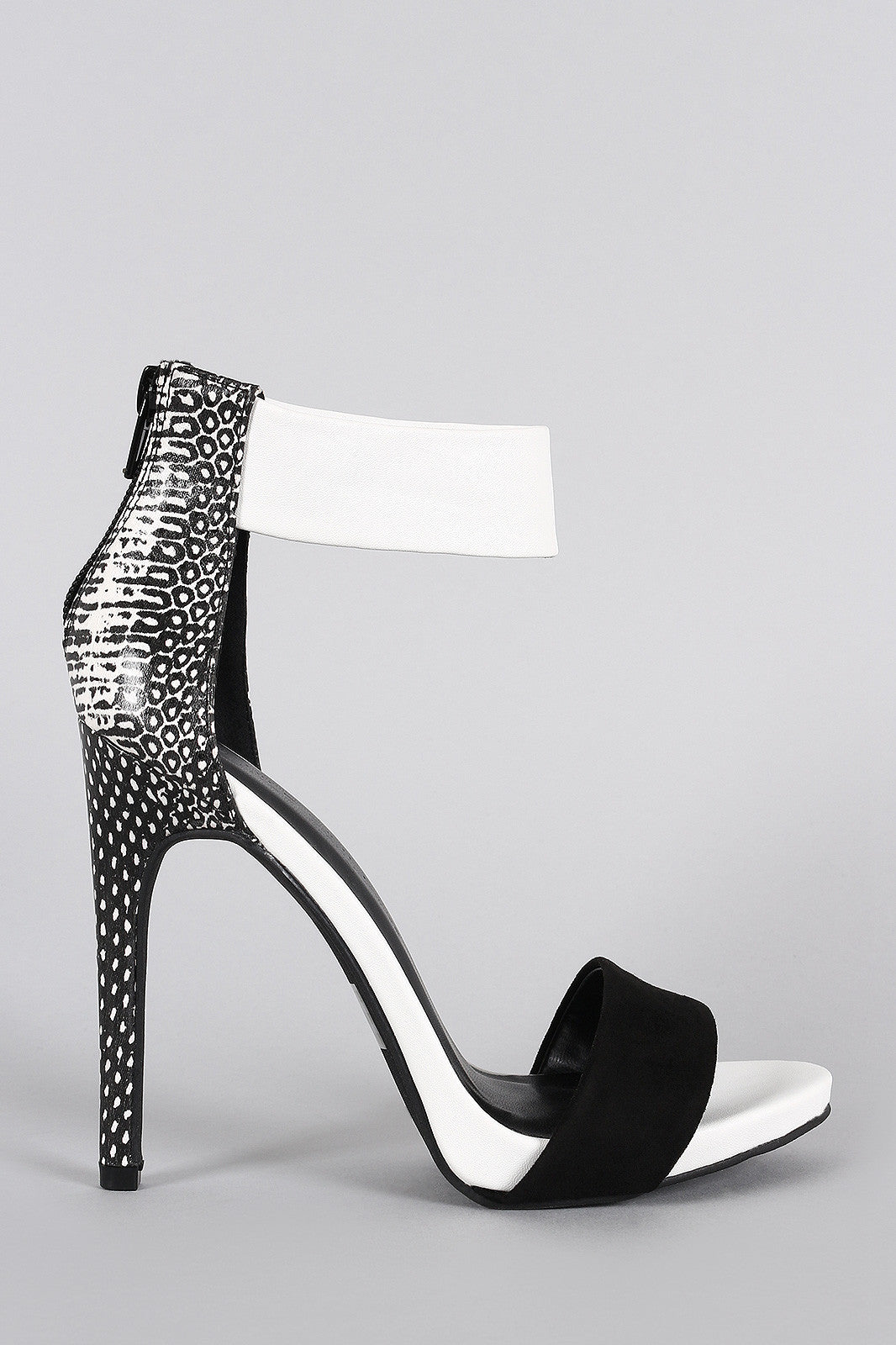 Wild Diva Lounge Two Tone Snake Open Toe Stiletto Heel