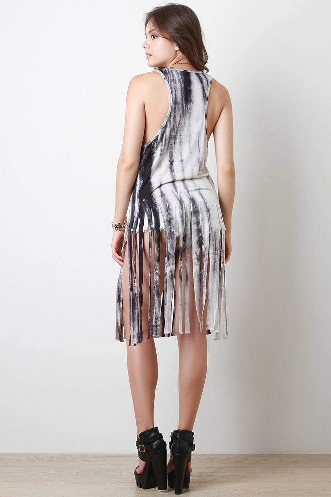 This casual top features tie-dye print on lightweight knit, scoop neckline, sleeveless construction, and finished with fringe hemline. Accessories sold separately. Made in U.S.A. 92% Polyester, 8% Spandex.