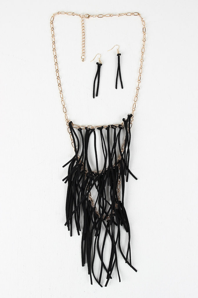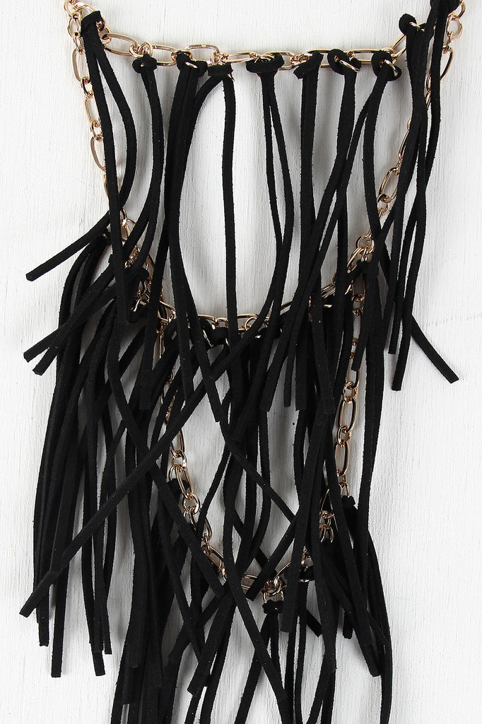 Tiered Suede Fringe Necklace