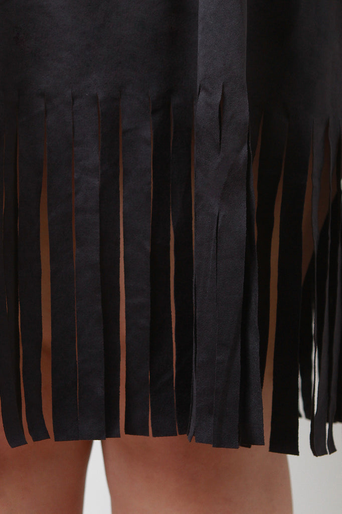 This fringe hemline and trim along the arm sleeves. Accessories sold separately. 92% Polyester. 8% Spandex.