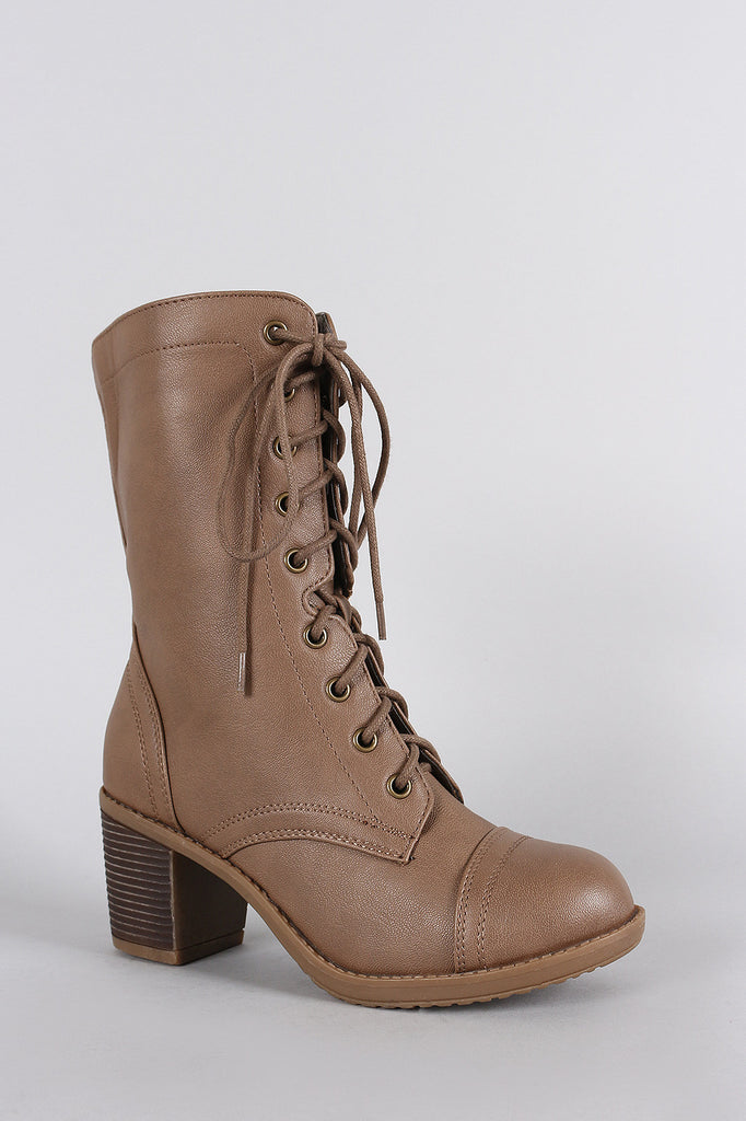 Wild Diva Lounge Chunky Heel Combat Lace Up Boots