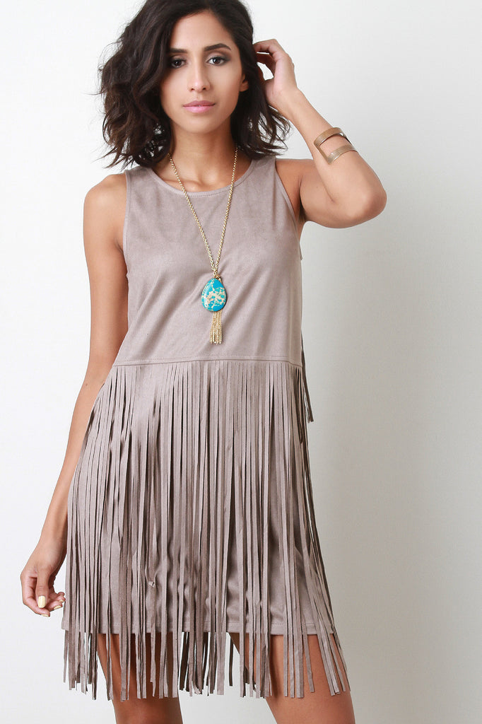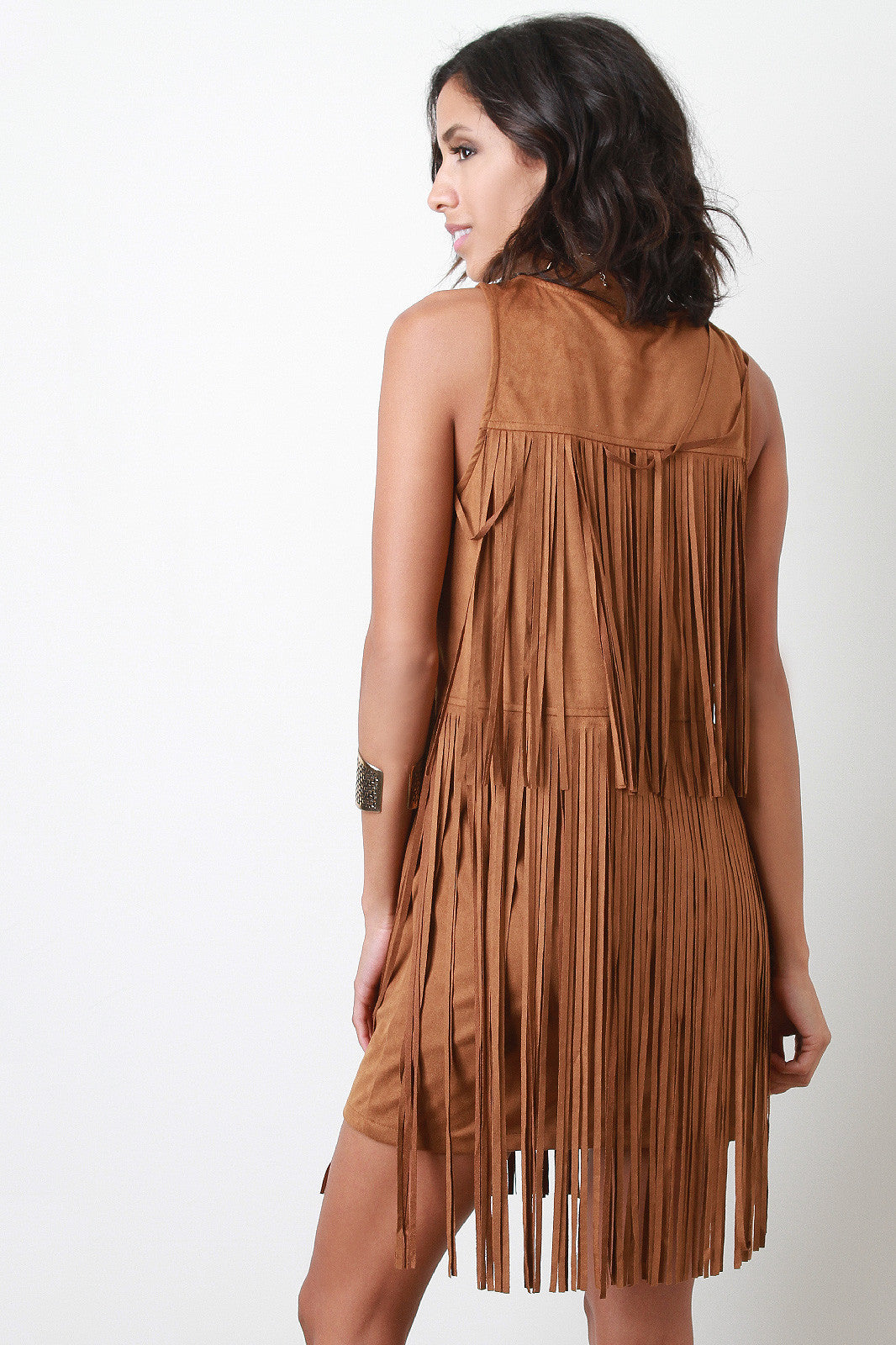 Sleeveless fringe skirt overlay, and two-tiered fringe back. Accessories sold separately. 100% Polyester.