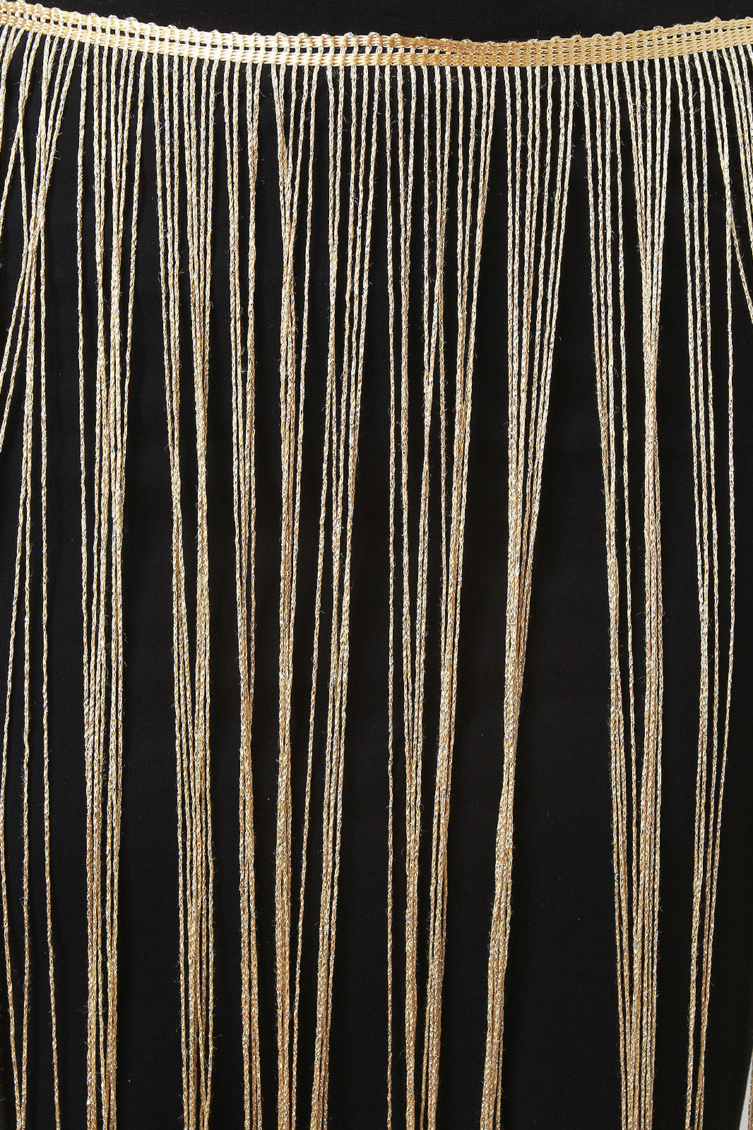 This mini skirt features a wide elasticized waist, stretchy fit, metallic cascading tassel fringes with dip dye bottom half. Accessories sold separately. 95% Cotton, 5% Spandex.