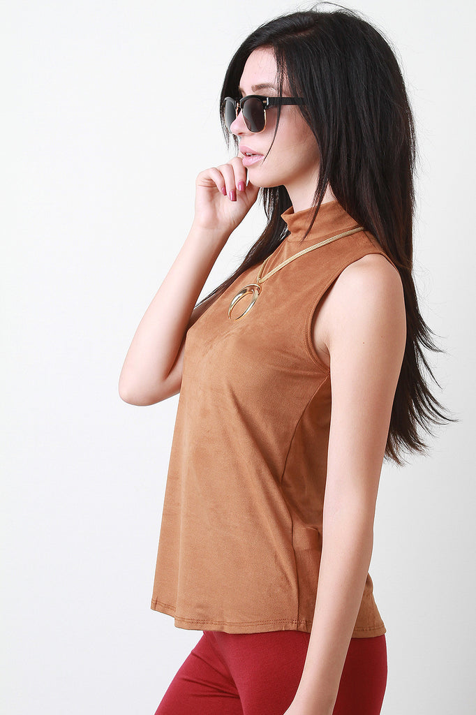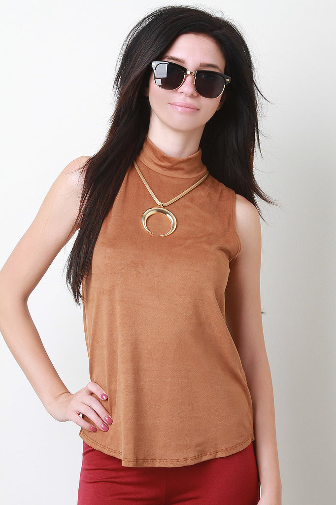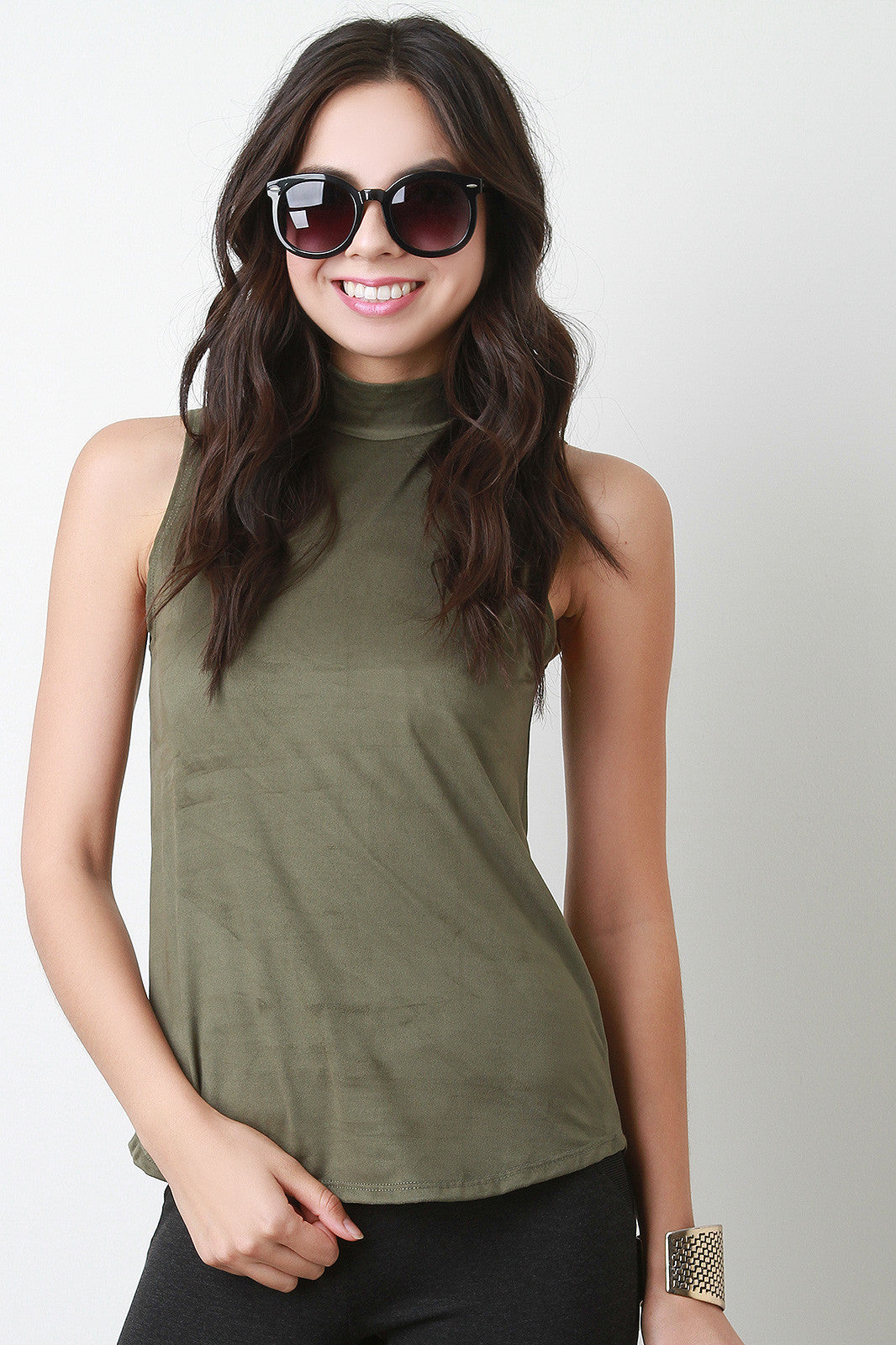 This lightweight top features a mock neck, sleeveless design, and stitching accents. Accessories sold separately. Made in U.S.A. 93% Polyester, 7% Spandex.