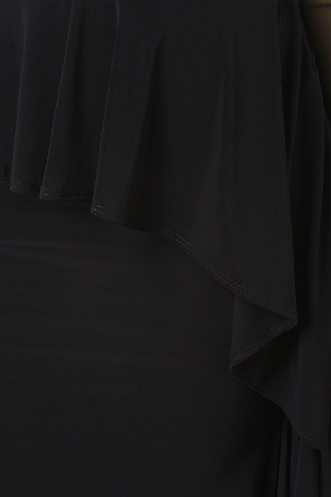 This midi skirt features stretch fabric, elasticized waist, and ruffle overlay accent. Accessories sold separately. Made in U.S.A. 95% Polyester, 5% Spandex.