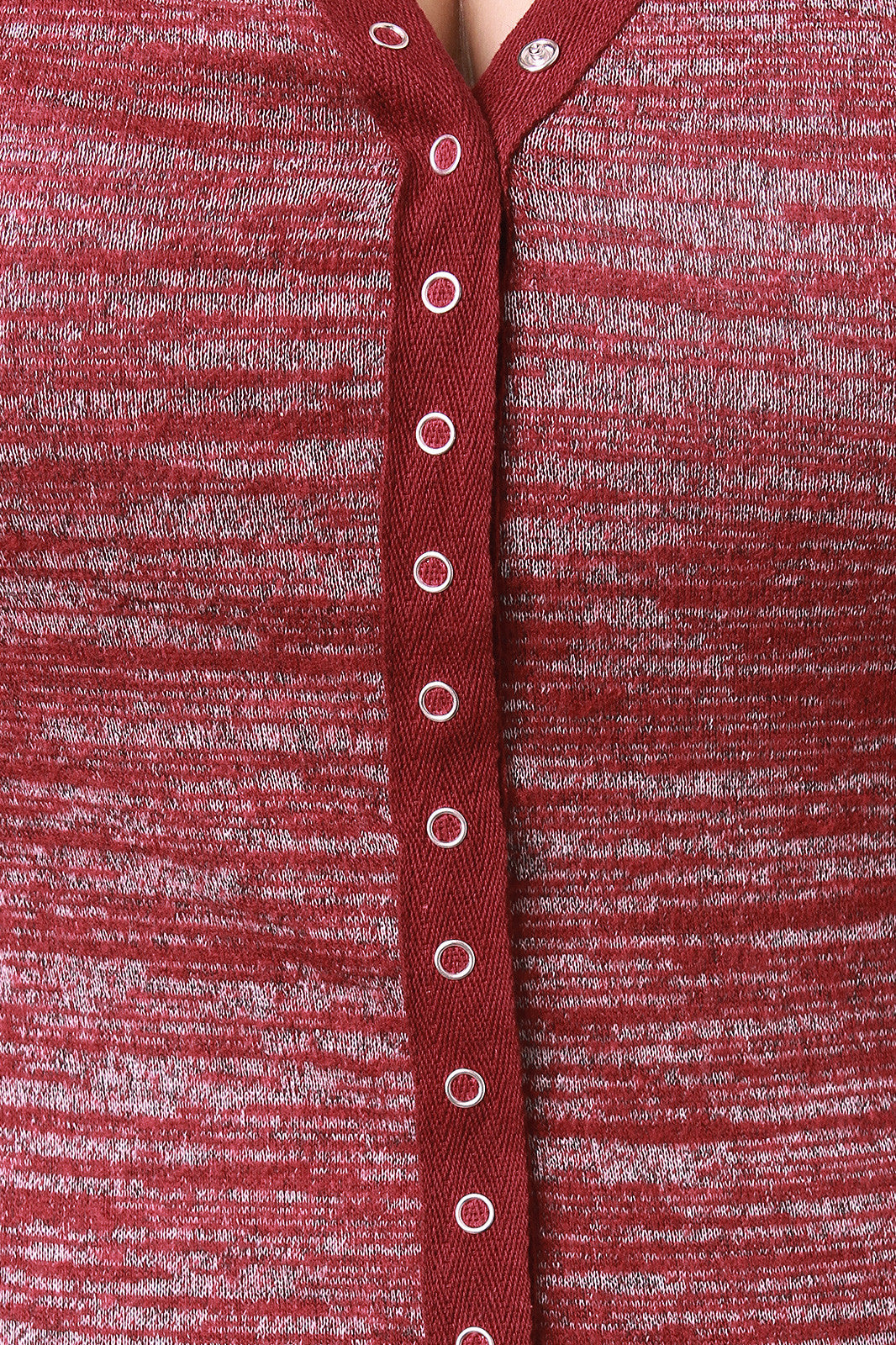 This plus size midi dress features a soft melange knit, snap button up front on cotton webbing placket, and full sleeves. Accessories sold separately. Made in U.S.A. 65% Polyester, 35% Rayon.