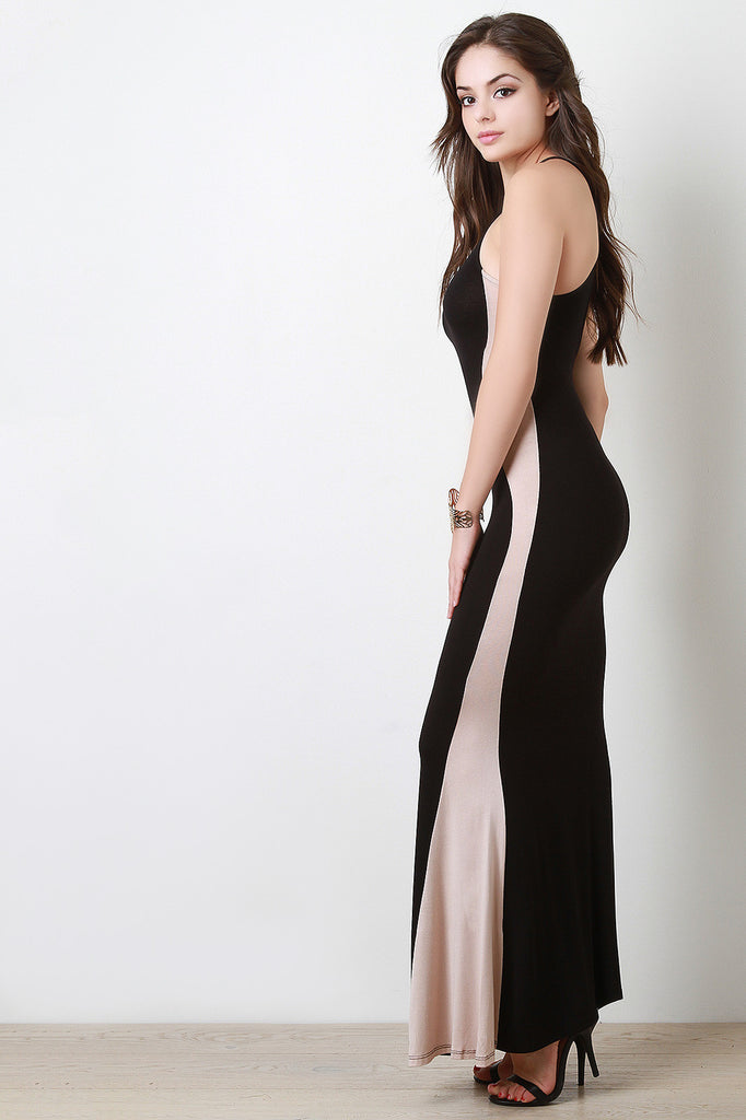 Sleeveless Sculpture Flared Maxi Dress