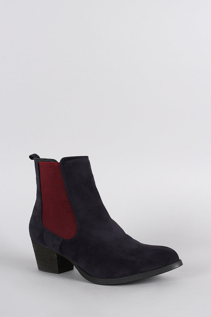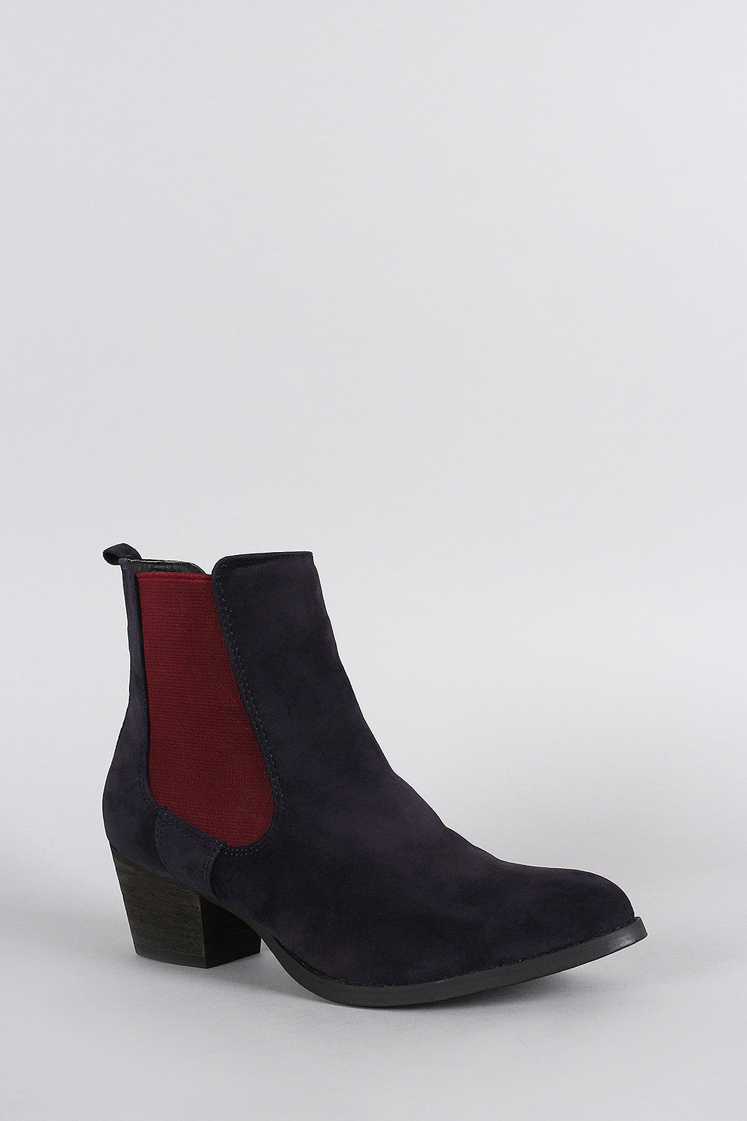 Elasticized Suede Almond Toe Cowgirl Ankle Boots