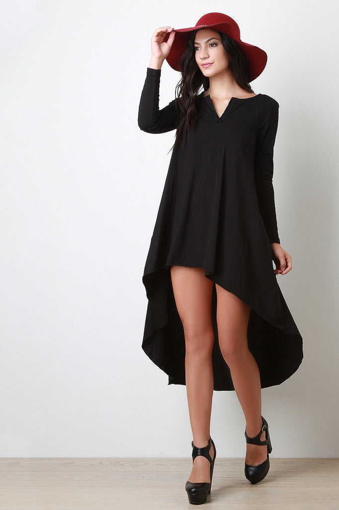 This lovely dress features a rounded neckline with v-slit detail, long sleeves design, and finished with raw high-low hemline. Accessories sold separately. Made in U.S.A. 100% Cotton.