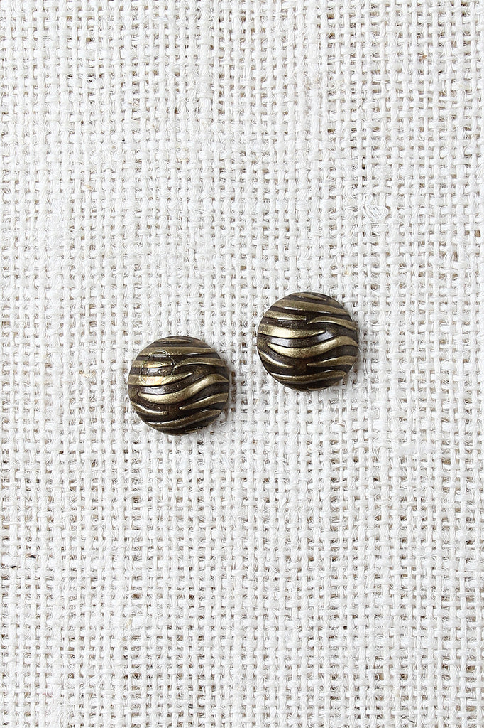 Round earrings featuring a zebra stripe pattern that stands out in relief. Finished with post backs.