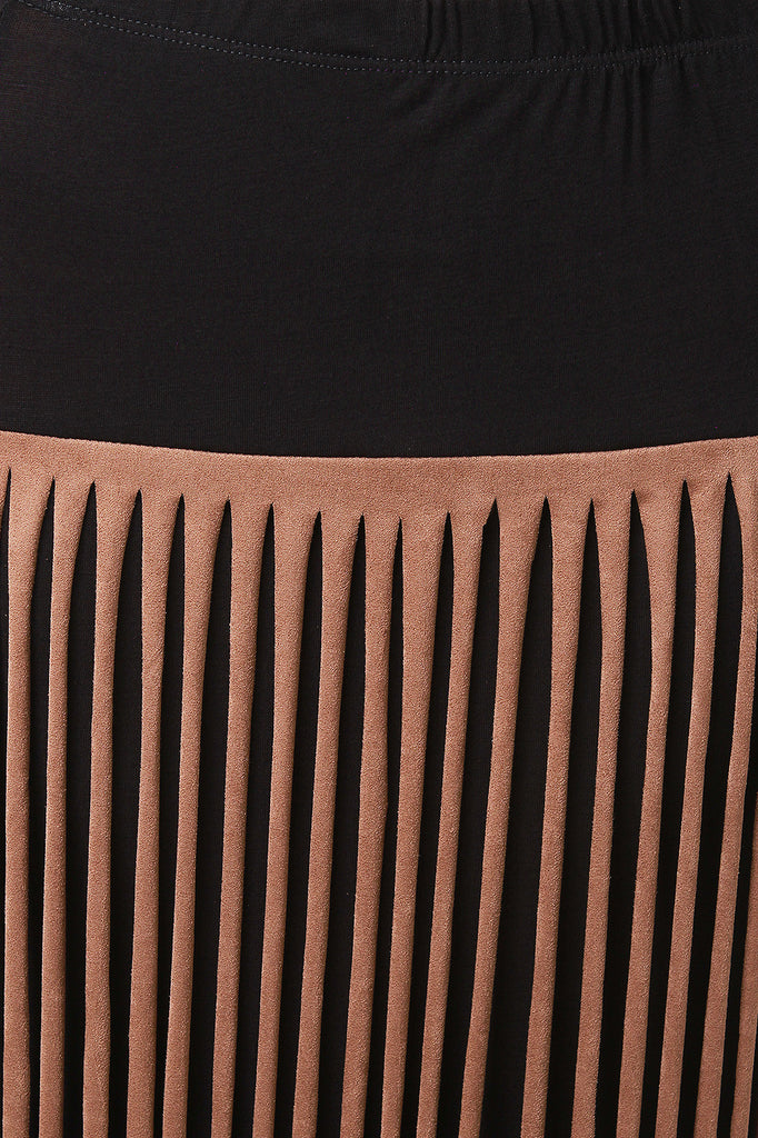 This fringe detail, and finished with maxi length hem. Accessories sold separately. Made in U.S.A. 92% Polyester, 8% Spandex.