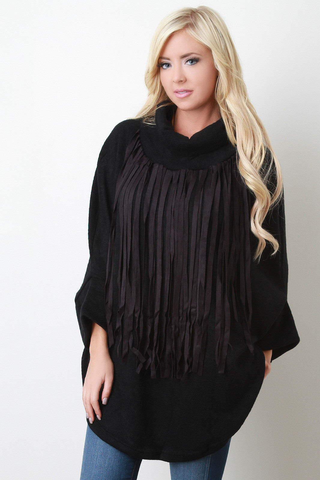 This comfy fringe detailing, dolman sleeves design, and rounded hemline. Accessories sold separately. 100% Acrylic.
