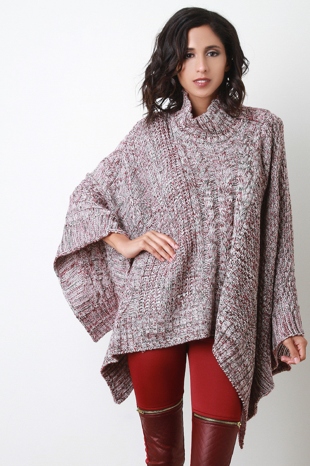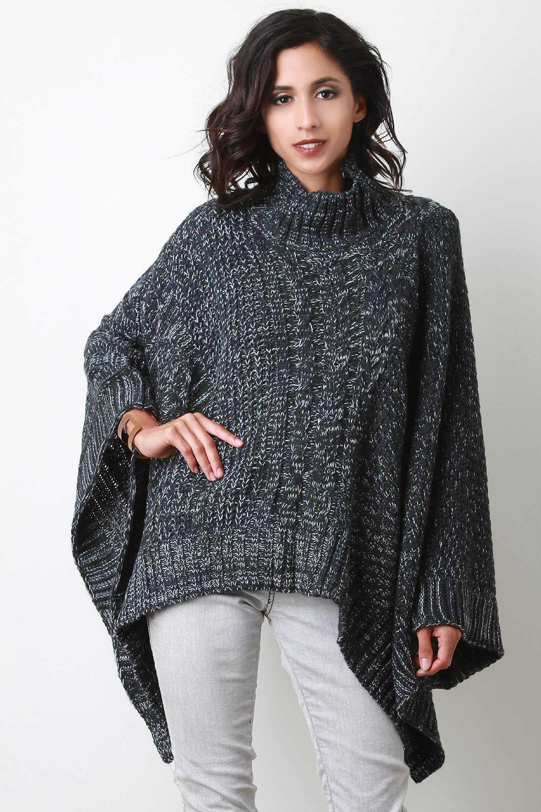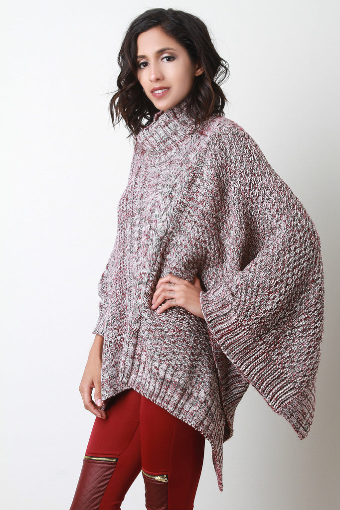 Cable Knit Turtleneck Poncho
