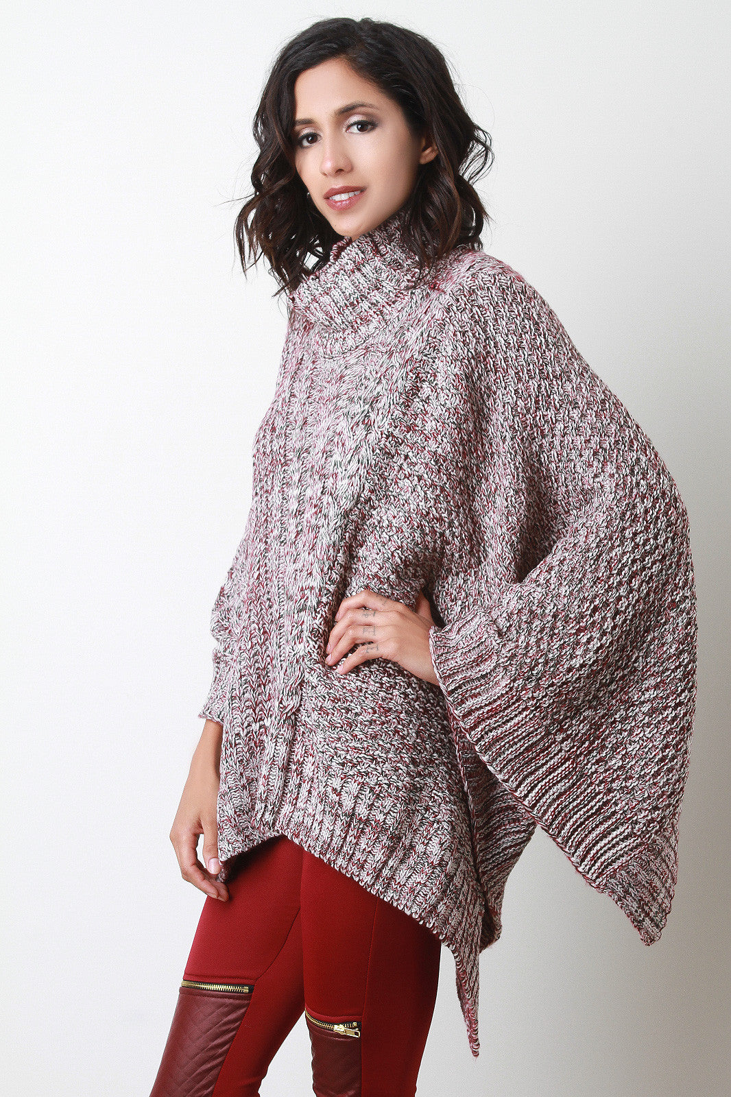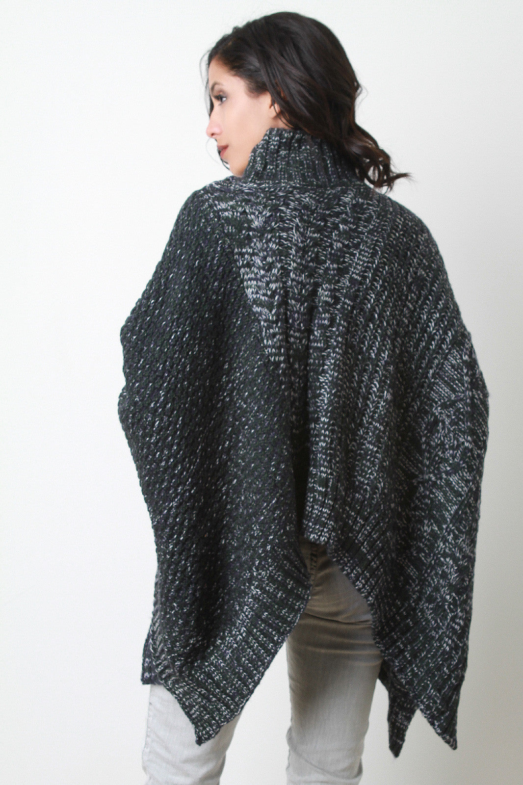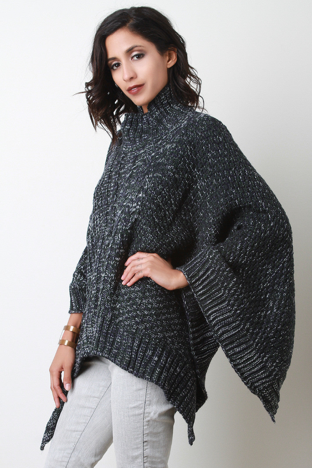 Cable Knit Turtleneck Poncho