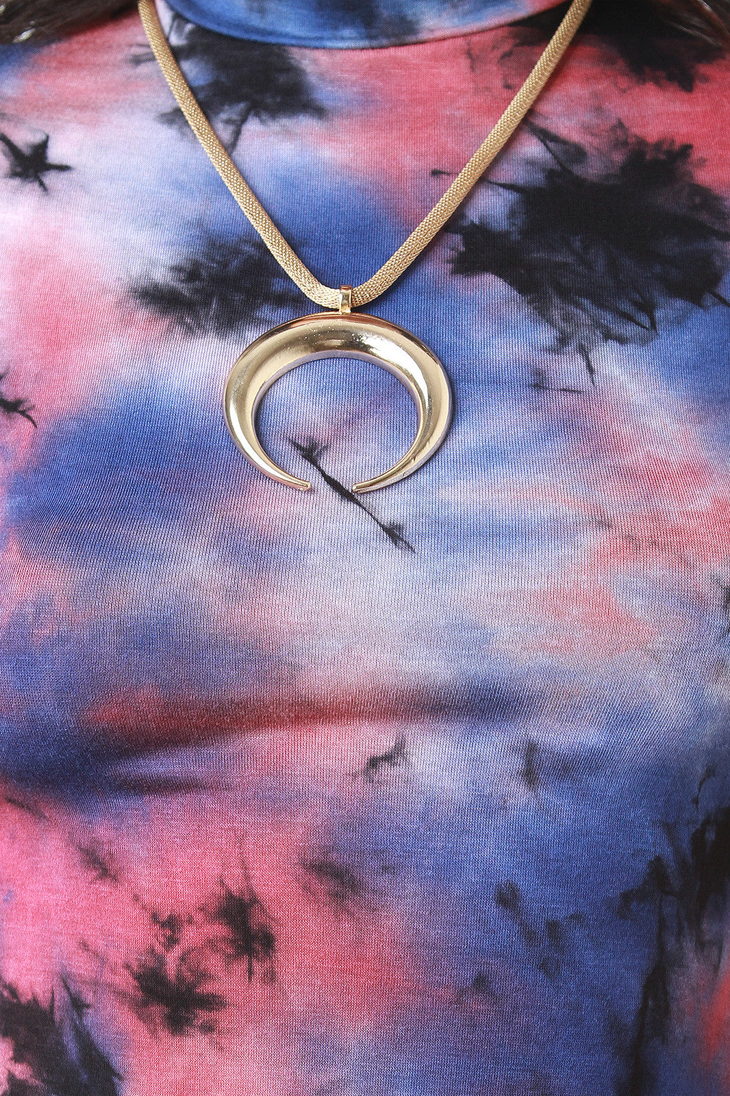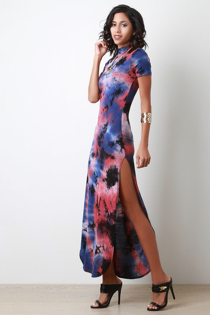Tie Dye Mock Neck Short Sleeves Slit Maxi Dress