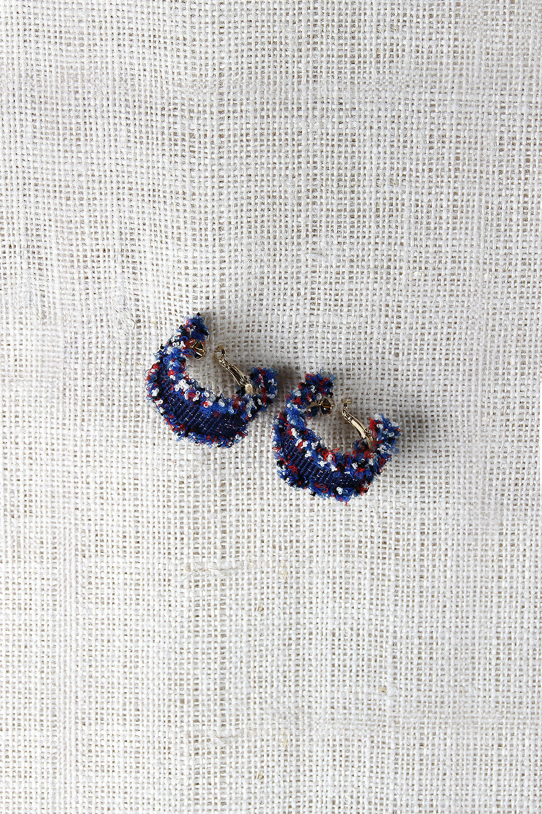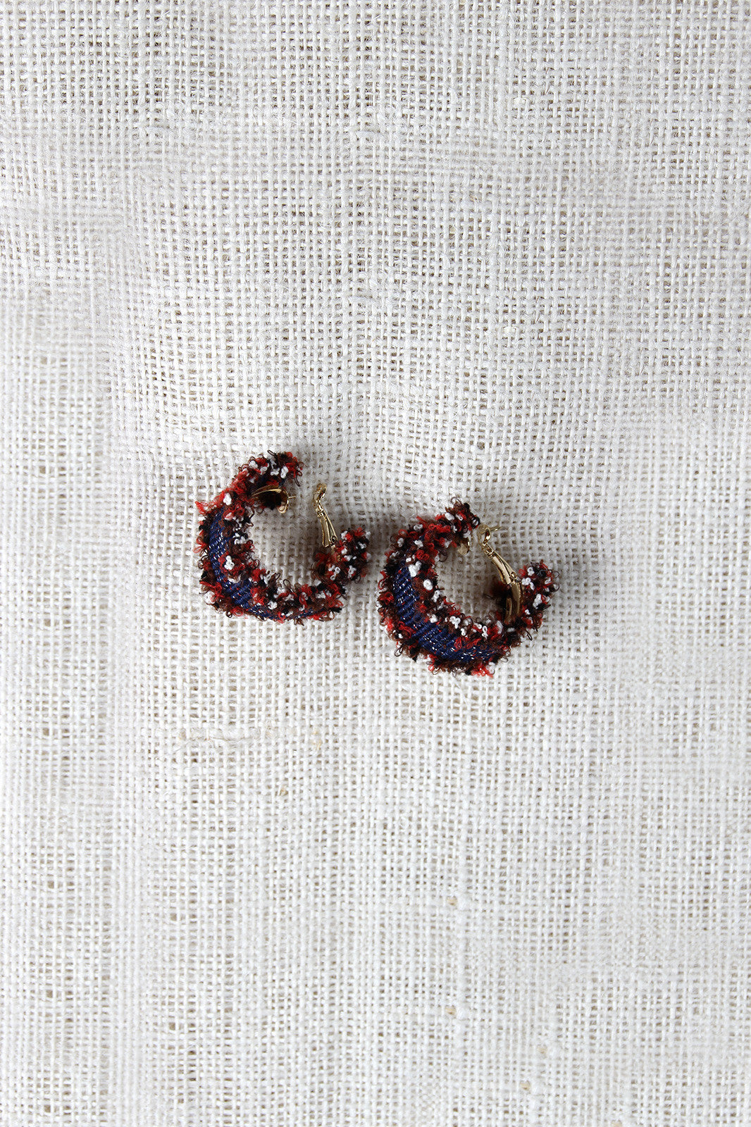 These earrings feature a soft, fluffy texture made with thread ruffles at the edges and omega back for closure.
