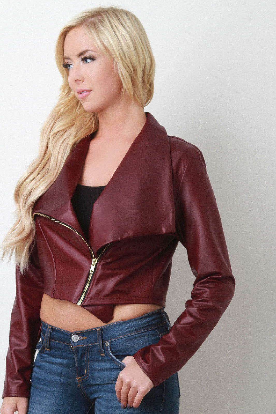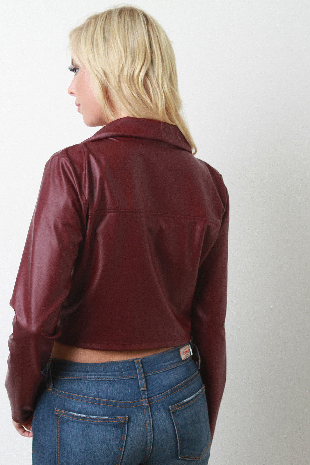 Vegan Leather Cropped Moto Jacket