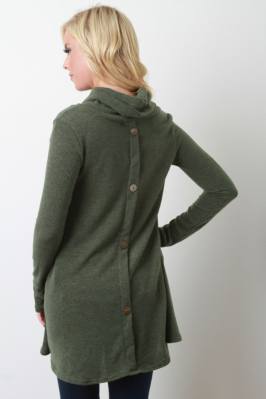 Button Back Cowl Neck Long Sleeves Tunic Top