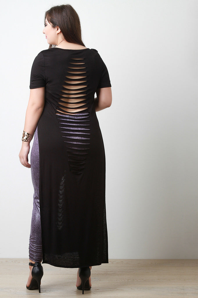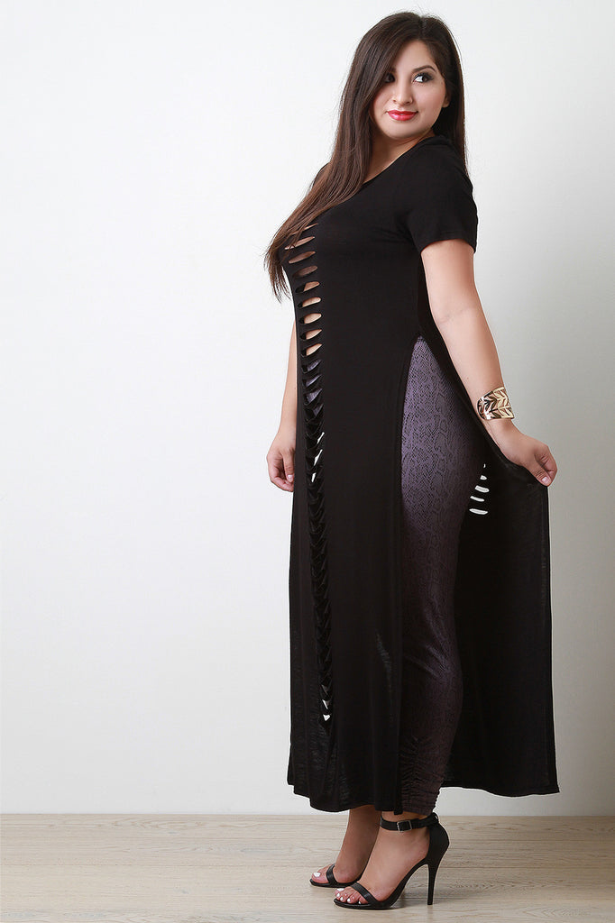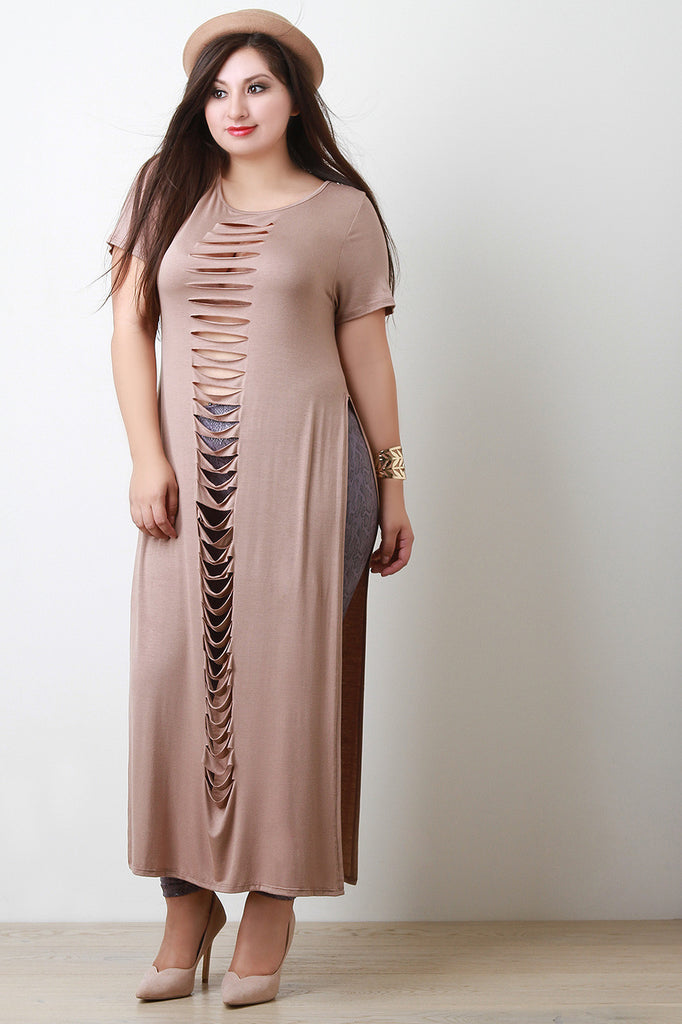 Slashed Deep Slit Short Sleeves Maxi Top