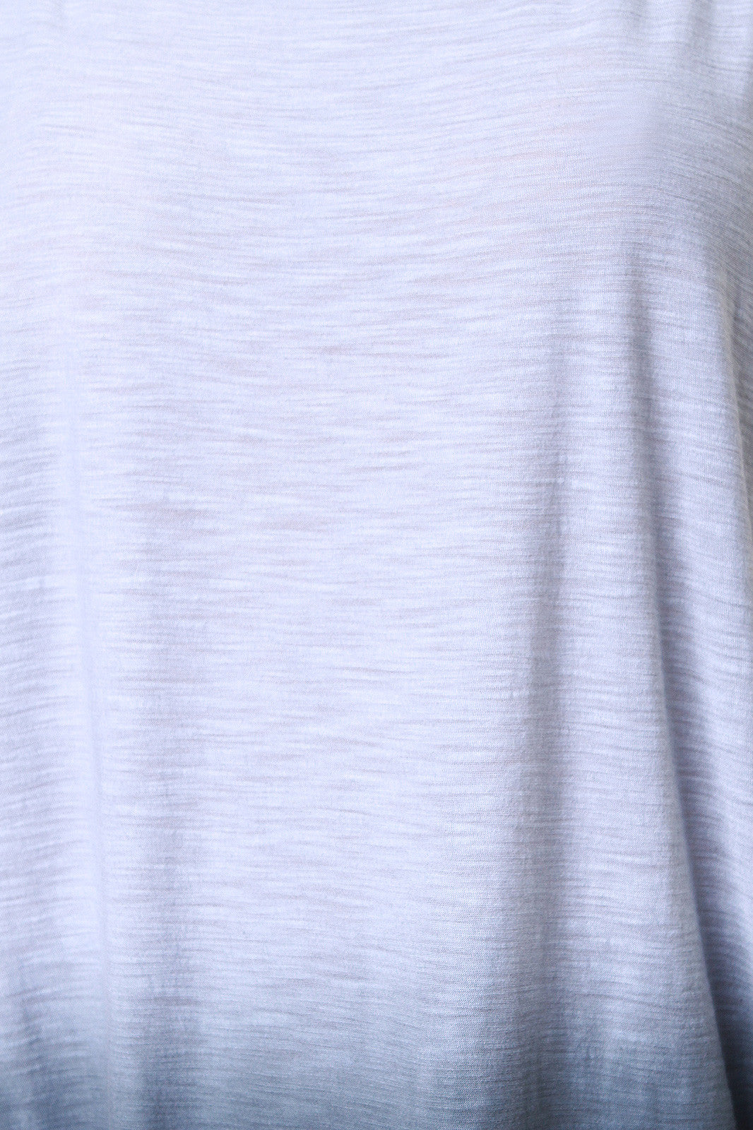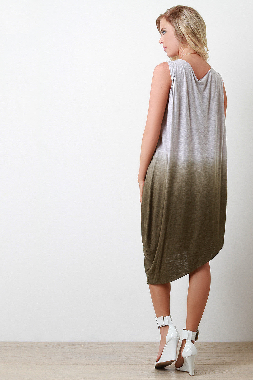 This casual dip-dyed jersey knit fabrication, round neckline, sleeveless design, raw edges, and asymmetrical hemline. Accessories sold separately. Made in U.S.A. 50% Cotton, 50% Modal.