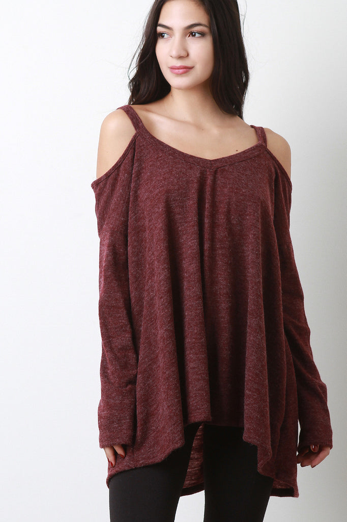A cozy knit long sleeves with dropped shoulders. Finished with a trapeze relaxed-fit bodice. Accessories sold separately. Made in U.S.A. 65% Acrylic, 25% Nylon, 10% Polyester.