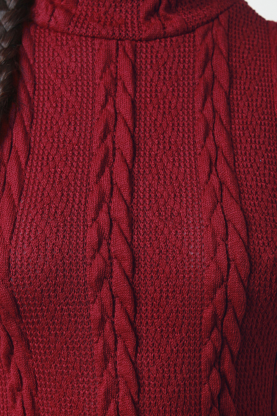 This chic sleeveless dress features a turtle neckline, stretchy sculpture fit, cable knit design, and knee length hem. Accessories sold separately. Made in U.S.A. 100% Polyester.