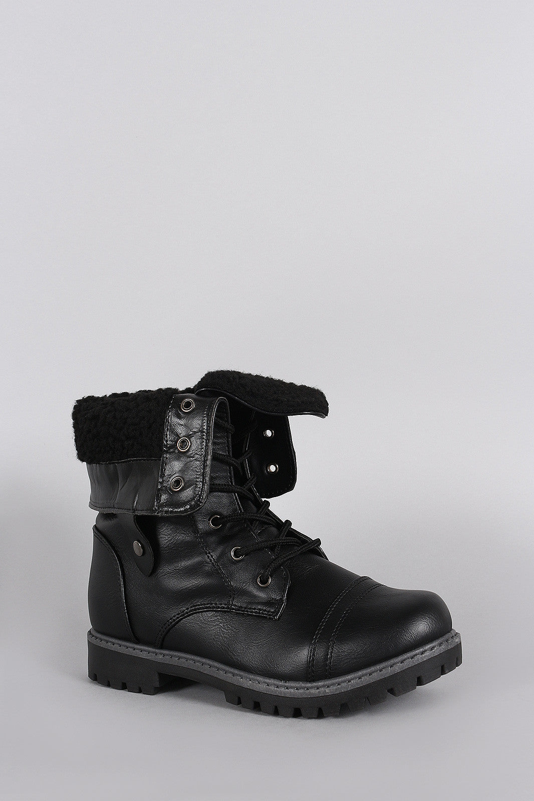 Shearling Foldover Cuff Lug Sole Combat Boots