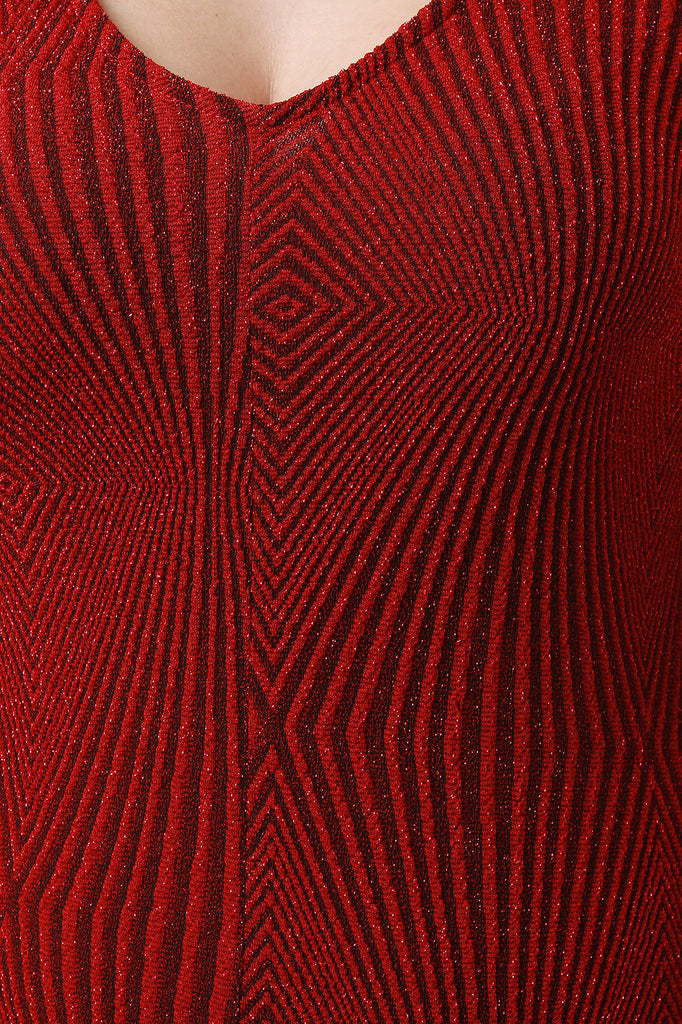 This plus size midi dress features a textured pattern knit fabrication with glitter accent, v-neck, long sleeves, front slit, and stretchy bodycon fit. Accessories sold separately. Made in U.S.A. 45% Polyester, 34% Nylon, 15% Lurex, 6% Spandex.
