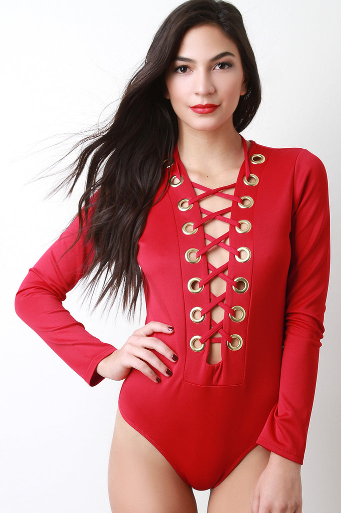 Eyelet Lace-up Long Sleeve Bodysuit