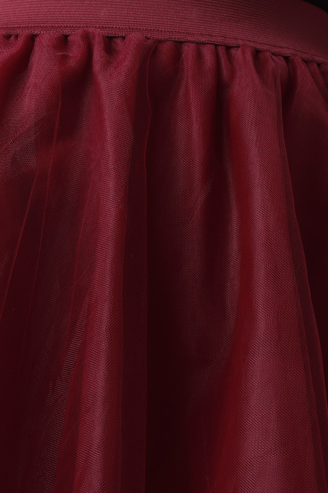 A plus size maxi skirt featuring a wide elastic waistband, voluminous layers of tulle, and smooth interior lining. Accessories sold separately. Self: 100% Polyester. Lining: 95% Polyester, 5% Spandex.