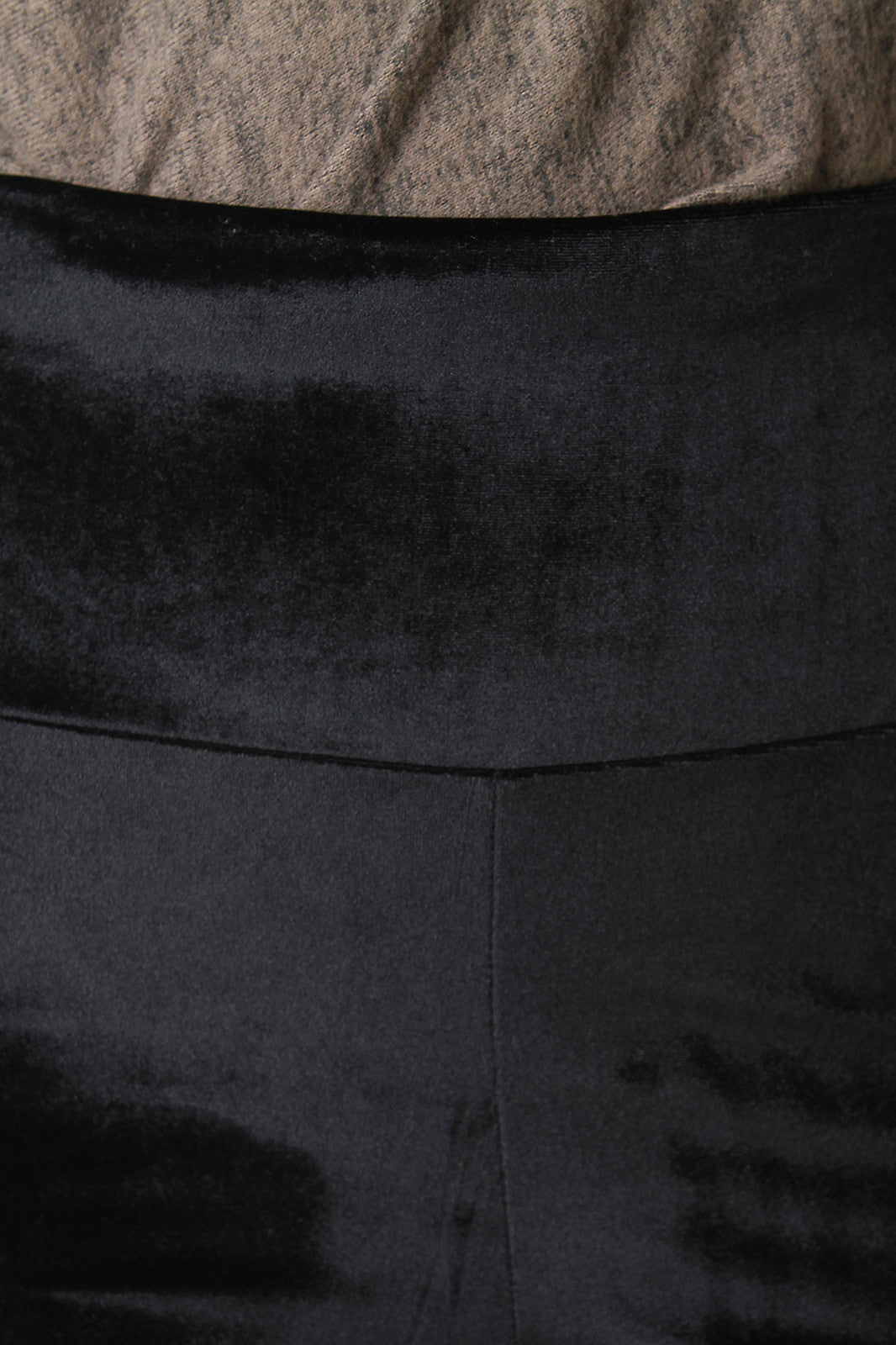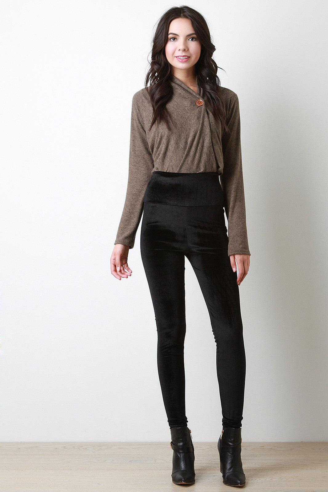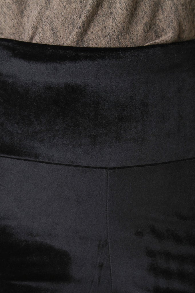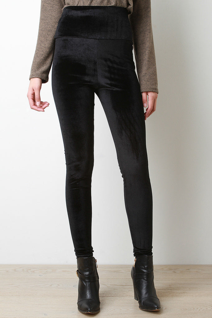 These leggings feature soft velvet fabric, high waist design, and taper cut. Accessories sold separately. Made in U.S.A. 90% Polyester, 10% Spandex.